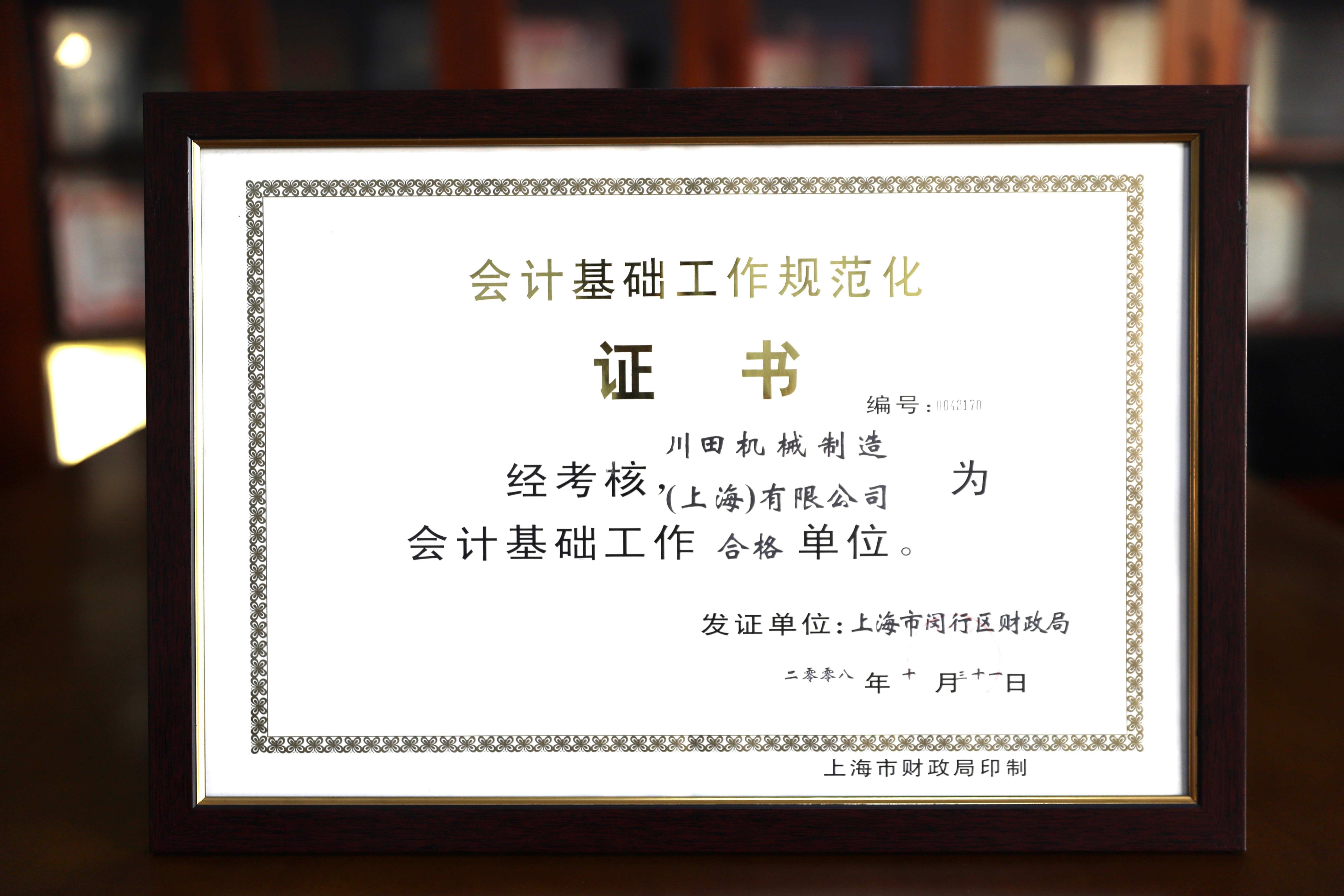 2008年度上海市赤十字栄譽証書-川田機械