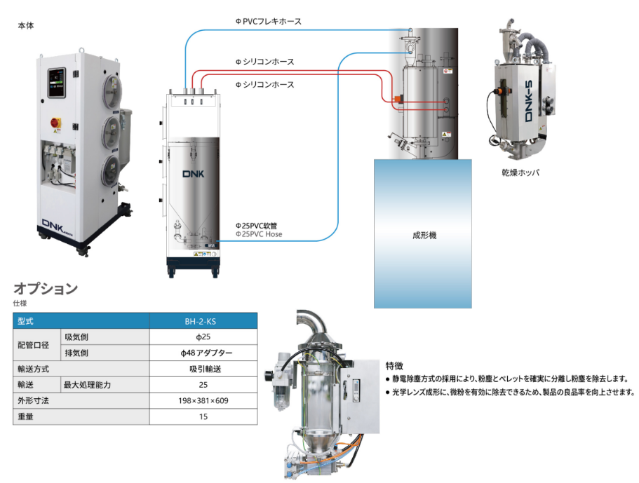 ストックタンクから成形機(jī)まで材料の品質(zhì)を最適管理 材料にダメ-ジを與えず、安定成形