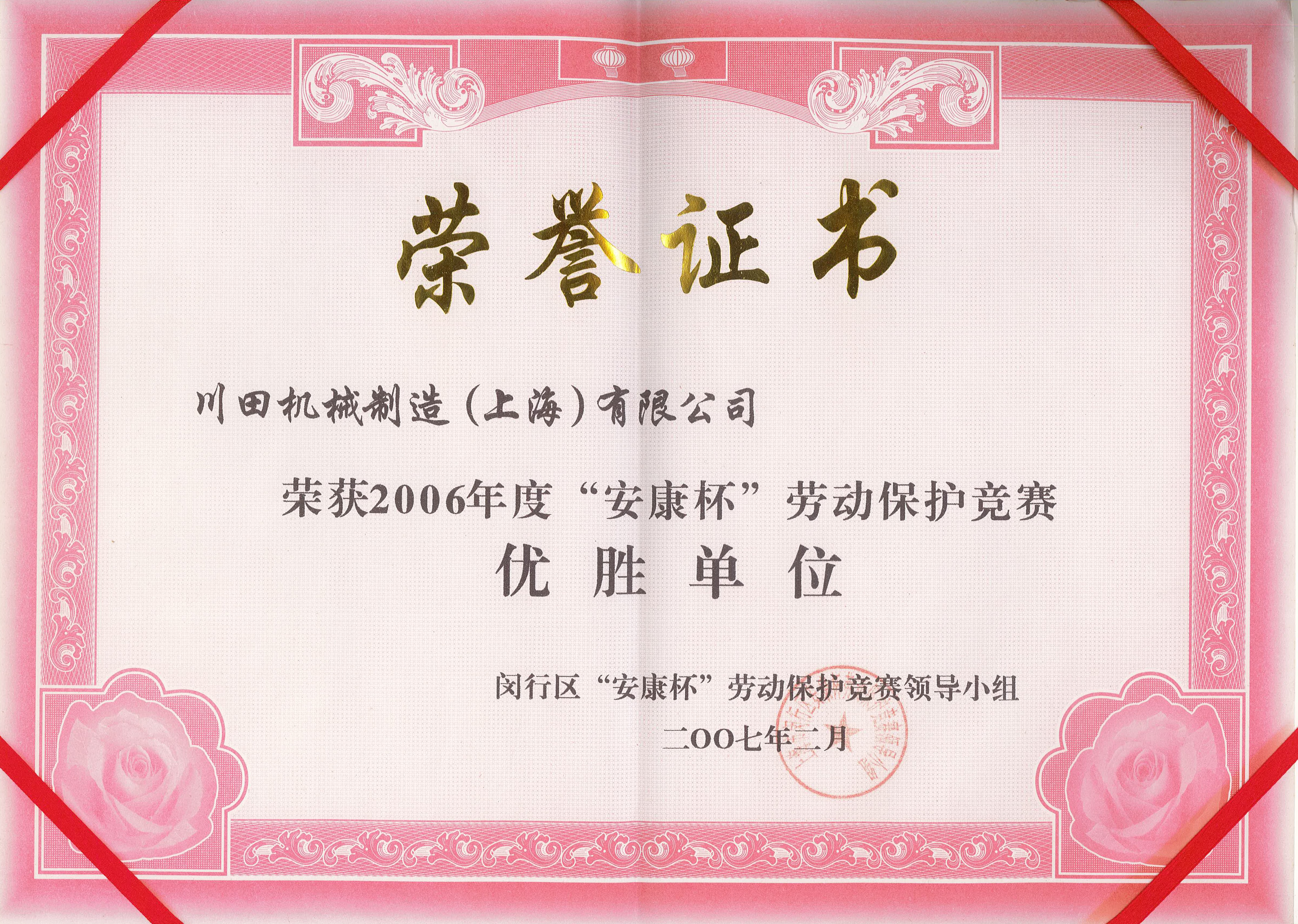 2006年度閔行區(qū)労働保護競技會優(yōu)勝賞