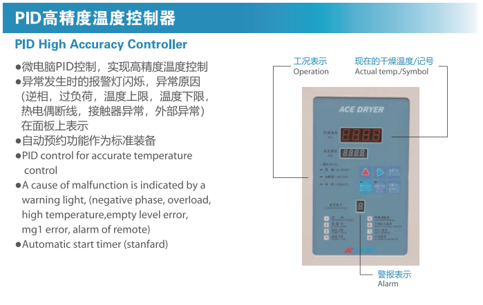 方便操作的機(jī)能滿載,適合對(duì)應(yīng)工廠的干燥機(jī)。
